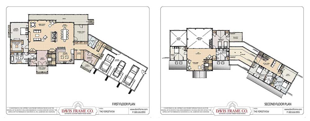 The Seaside timber frame floor plan, above, is a good example of a floor plan with a separate en suite guest space. Upstairs features plenty of guest space, including a guest suite located in its own space upstairs, away from the other guest bedrooms.