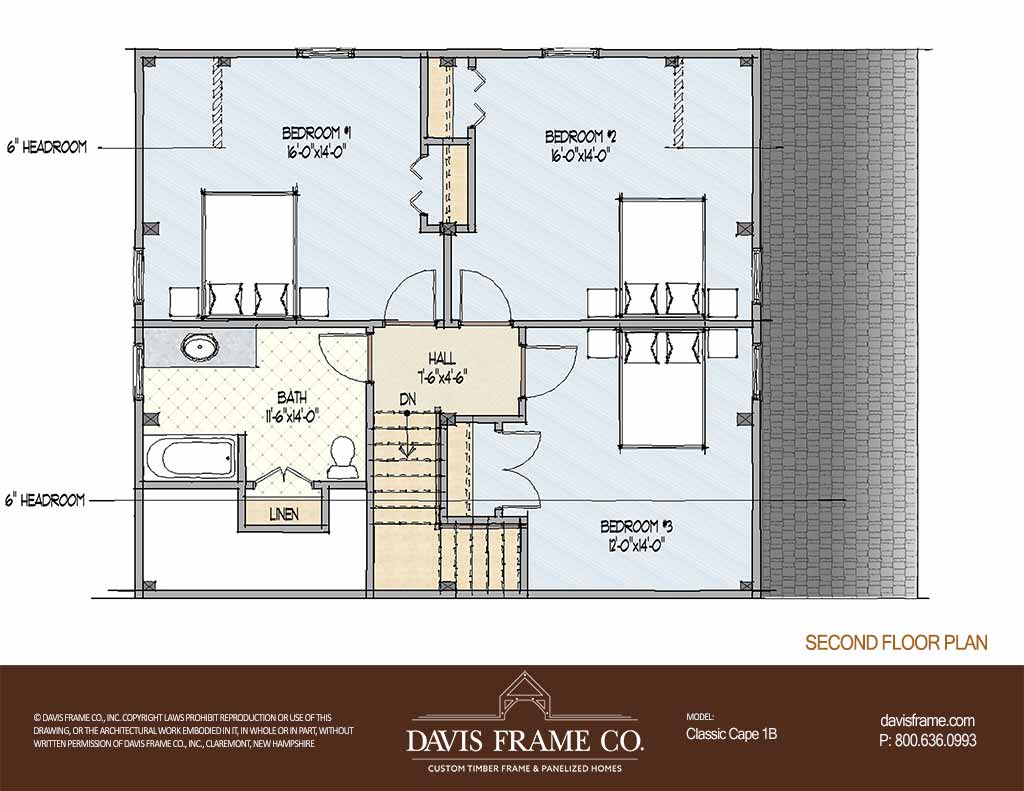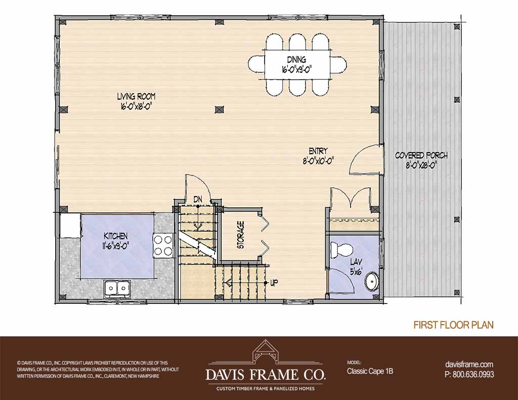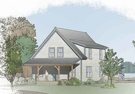 A shed entry porch leads into the open first-floor plan of this Classic Cape design, creating a spacious area for kitchen, living and dining rooms. The second floor with one shed dormer includes three bedrooms and a full bath.