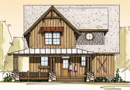 The Cumberland Trace by MossCreek creates a “rest stop for travelers.” Open plan living and a Master Bedroom on the main level are a welcomed comfort. Generous Guest Bedrooms complete the perfect floor plan. With the use of natural materials of wood, stone, and glass, the Cumberland Trace is the perfect small rustic home.