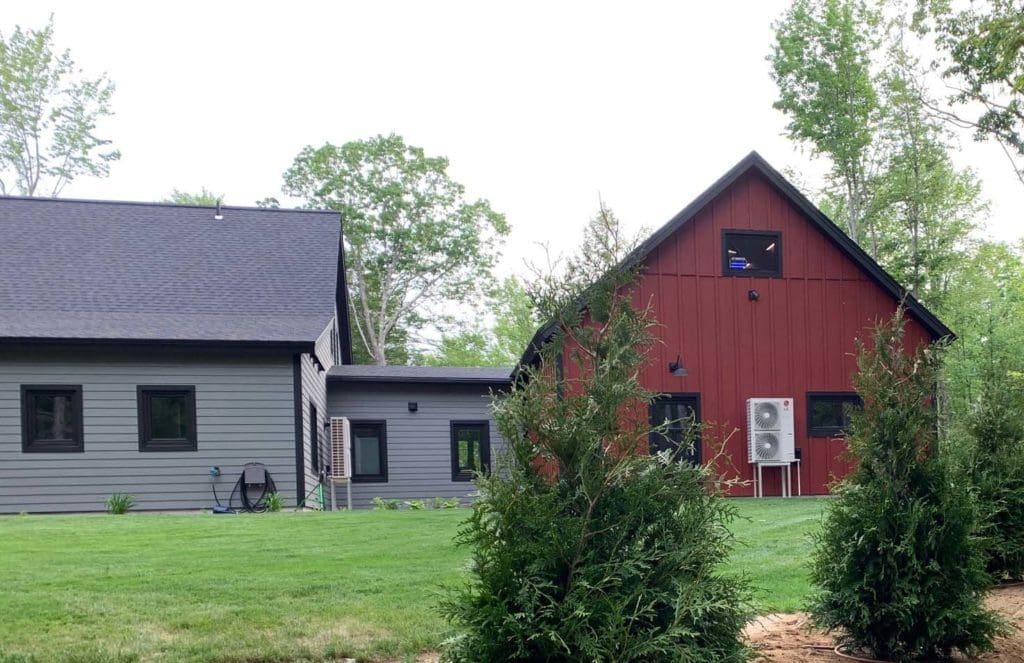 Shown above is a heat pump system. The white fans you see on the red portion of this house is the system.