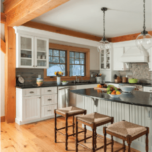 Average cost of the Davis Frame Timber Frame Package starts at $150.00 per sq. ft., depending on the size and complexity of the timber frame. The overall finished cost of a Davis Frame custom home is generally $350 to $450+ per sq. ft., not including land or site work. Your final cost to build will vary depending on the location of the project, complexity of the design, and the price point of your interior finishes. In addition to this starting package you’ll want to budget for your chosen contractor, site prep/foundation, permits, interior design, etc.