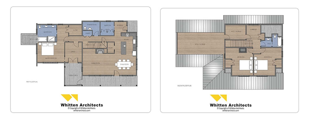 How can you build your own Dash Landing farmhouse? Davis Frame Company is working with Whitten Architects to offer the Dash Landing Farmhouse as a standard model option for our home packages. We can price the farmhouse a few different ways: panelized construction, hybrid timber frame construction, or as a full timber frame materials package. The beautiful New England-style barn is also an option to add to this farmhouse home package. Learn more about this gorgeous design and check out the floor plan below.