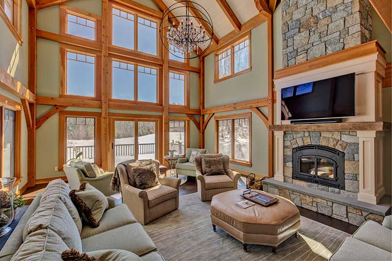 After seeing this amazing New Hampshire timber frame ski home for ourselves, we knew we had to photograph it. It’s a showpiece for sure! Visit our website to check out more photos of this stunning timber frame ski home. Interested in learning more about our timber frame homes? Call us at 800.636.0993!