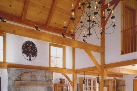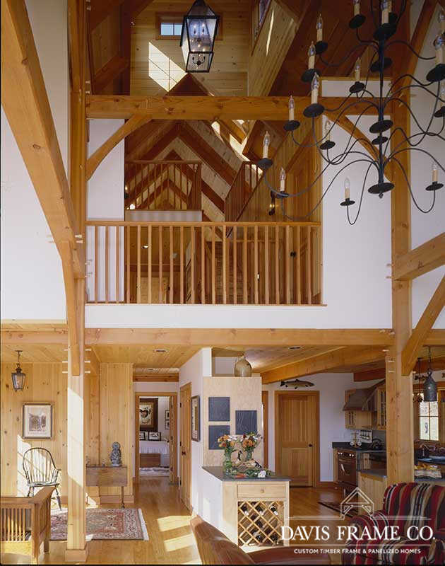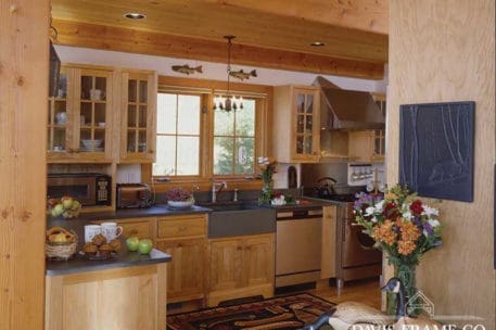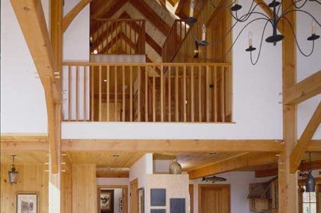 Originally intended to allow better air circulation in hay lofts, we’ve added a charming traditional barn cupola to this design, as well as an entry porch. The first floor features an open kitchen and dining room, two bedrooms with a full bath, and the cathedral-ceiling great room common to several other Classic Barn models. The second floor has a balcony off the master bedroom and a full ensuite bath. The barn cupola admits natural light to a third floor loft and the second-floor balcony.
