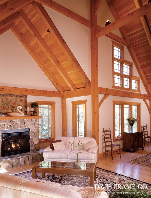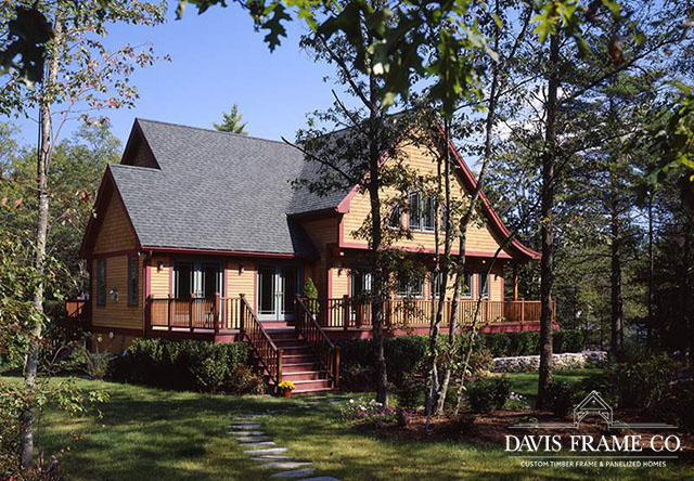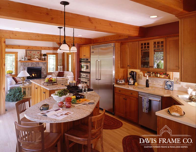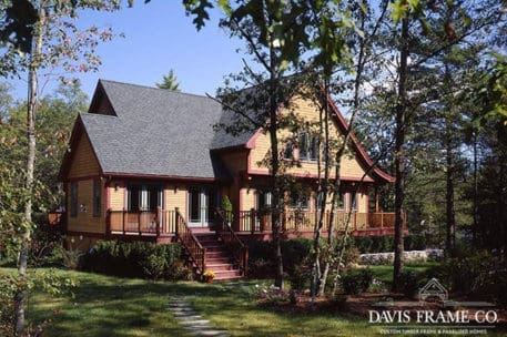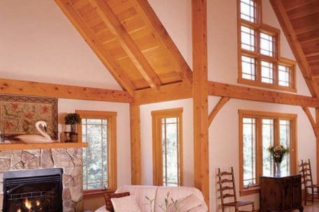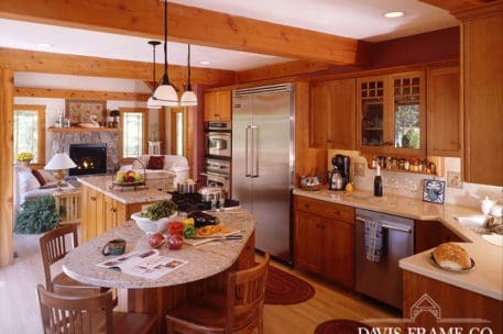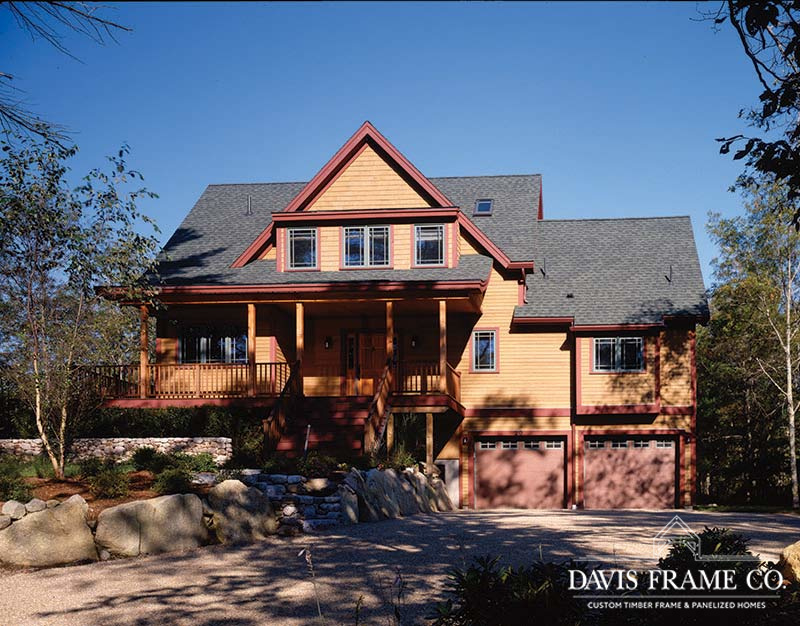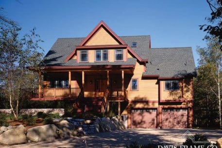 This 2455 square-foot custom timber frame home has everything – a well-organized floor plan combined with energyefficient, low- maintenance building materials, and the feel of luxury kept within budget by creative planning. The first floor features a dream kitchen that leads to a comfortable great room on one side and a cozy breakfast nook on the other. The nearby dining room connects to a covered porch for year-round entertaining of larger crowds and dinner parties. The private first-floor master suite features a walk-in closet, large ensuite bathroom, and access to one of the decks.