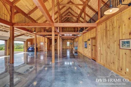 This amazing timber frame barn was carefully thought out down to every last detail. The barn features a 3-bay garage with polished floors that really make a statement and allow for super easy cleanup. The space is perfect for a workshop or for storing cars and toys of all sizes and shapes.