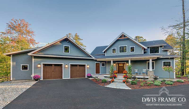 Beautiful hybrid timber frame home designed and built by Hayward & Company. We worked closely with the Haywards on the structural package which include a center section timber frame and our panelized walls for the wings. This home was also featured on the Lakes Region Parade of Homes tour in 2017.
