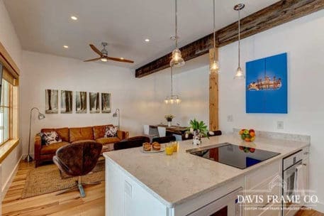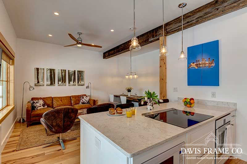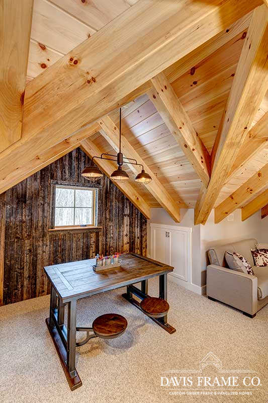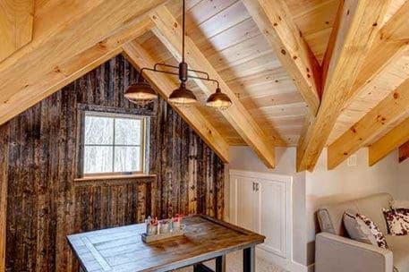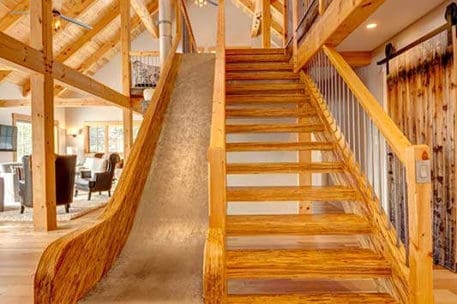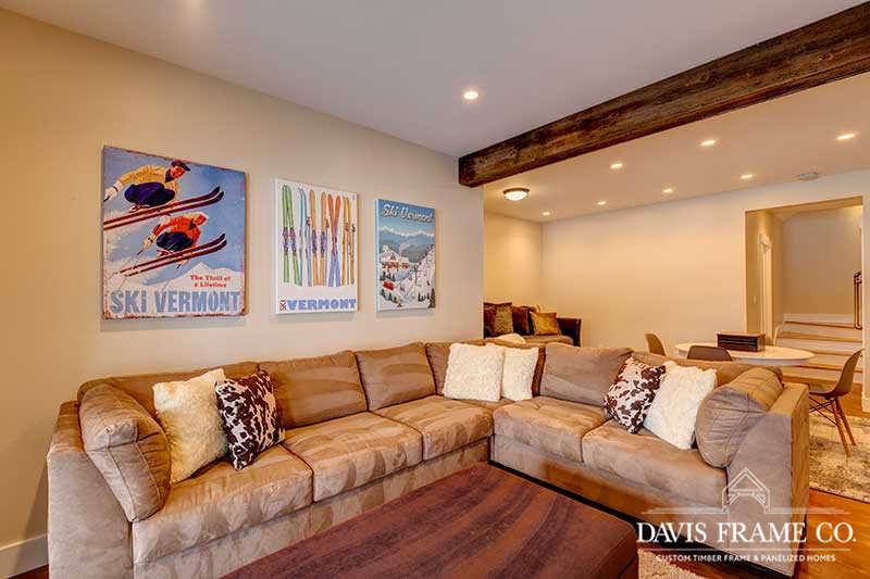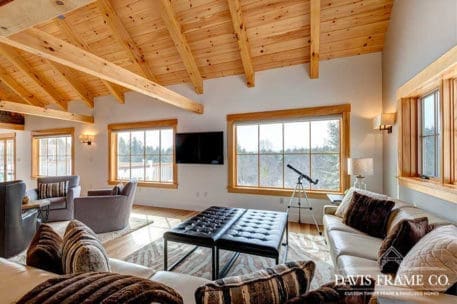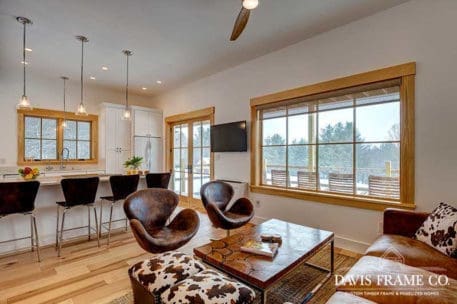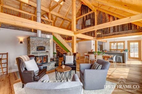 This beautiful Vermont Barn Home is known to the homeowners as “La Maison de Pommes” as the home was built on an old apple orchard. The timber frame barn features a unique floor plan with 4 levels. The first two levels are a rental for those looking for the perfect ski trip. The upper two levels are the homeowner’s living quarters.
