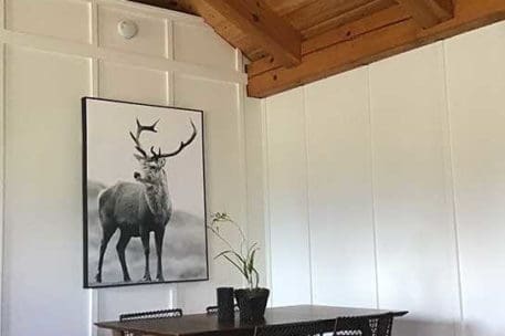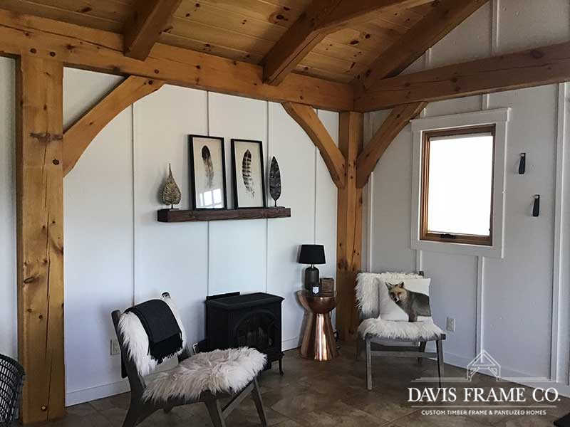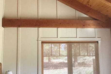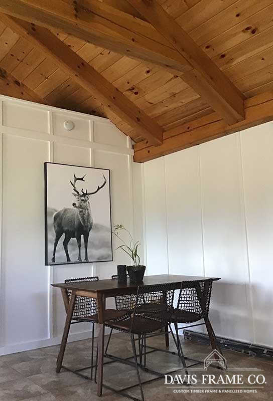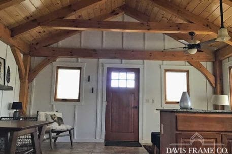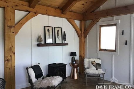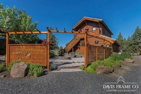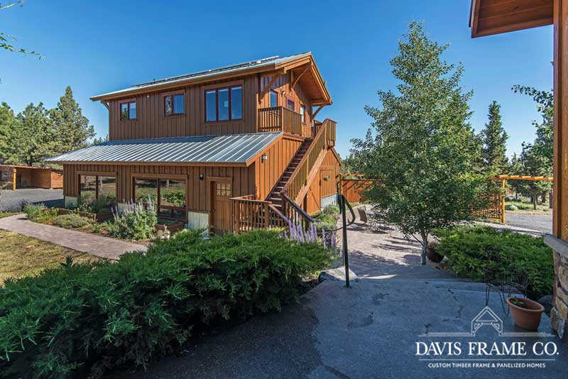 Located in Sisters, OR this timber frame carriage house fits right in next to the primary residence. Completely off-grid, the monitor barn-style, one bed, one bath guest quarters sit atop a 1,200 sq. ft. two car garage and workshop space.